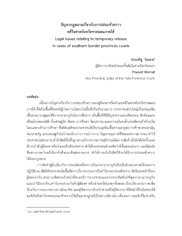 เนื่องจากปัญหาเกี่ยวกับการปล่อยชั่วคราวของผู้ต้องหาหรือจ าเลยคดีในศาลจังหวัดชายแดน