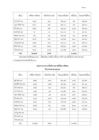 เดือน คดีจัดการพิเศษ คดีเสร็จตามนัด ร้อยละคดีเสร็จ คดีเลื่อน ร้อยละคดีเลื่อน