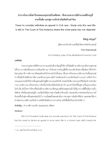 ค ำส ำคัญ : อ านาจพิจารณาสั่ง, ถอนอุทธรณ์, คดีแพ่ง