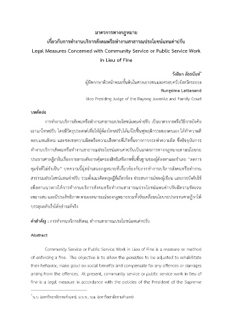 ค าส าคัญ : การท างานบริการสังคม, ท างานสาธารณประโยชน์แทนค่าปรับ