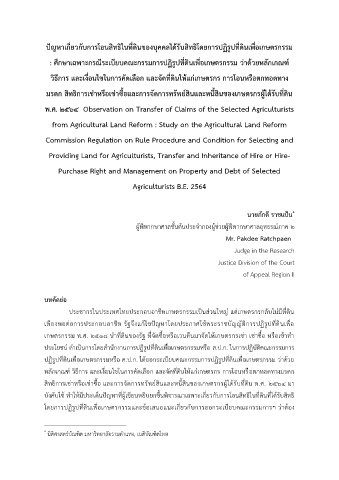 พ.ศ. ๒๕๖๔ Observation on Transfer of Claims of the Selected Agriculturists
