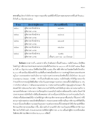 ข้อสังเกต จากตารางที่ ๑ และตารางที่ ๒ ข้างต้นพบว่าตั้งแต่ปี ๒๕๖๐ จนถึงปี ๒๕๖๓ มีคดีฟอง