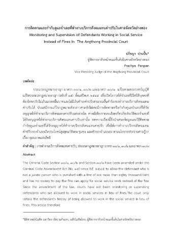 การติดตามและก ากับดูแลจ าเลยที่ท างานบริการสังคมแทนค่าปรับในศาลจังหวัดอ่างทอง