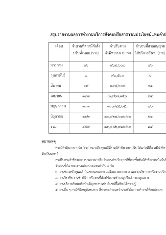 เดือน จ านวนที่ศาลมีค าสั่ง ค่าปรับตาม จ านวนที่ศาลอนุญาต จ านวนค่าปรับบริการ ประเภทงาน จ านวน จ านวนวัน