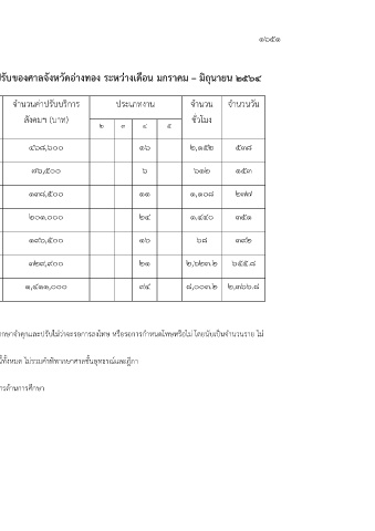 เดือน จ านวนที่ศาลมีค าสั่ง ค่าปรับตาม จ านวนที่ศาลอนุญาต จ านวนค่าปรับบริการ ประเภทงาน จ านวน จ านวนวัน