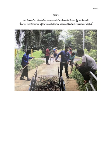 1653 ตัวอย่าง การท างานบริการสังคมหรืองานสาธารณประโยชน์แทนค่าปรับของผู้ถูกคุมประพฤติ ที่หน่วยงานภาคีรายงานต่อผู้อ านวยการส านักงานคุมประพฤติจังหวัดอ่างทองตามภาพต่อไปนี้