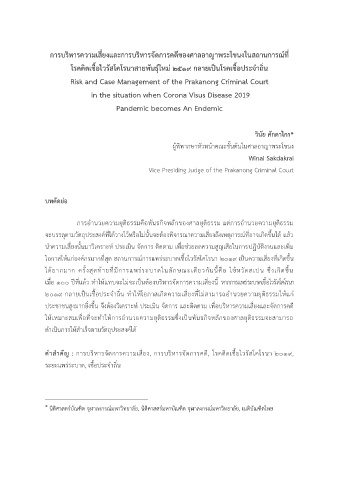 ค าส าคัญ : การบริหารจัดการความเสี่ยง, การบริหารจัดการคดี, โรคติดเชื้อไวรัสโคโรนา ๒๐๑๙,