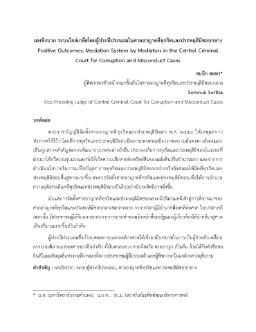 ค าส าคัญ : ผลเชิงบวก, ระบบผู้ประนีประนอม, ศาลอาญาคดีทุจริตและประพฤติมิชอบกลาง