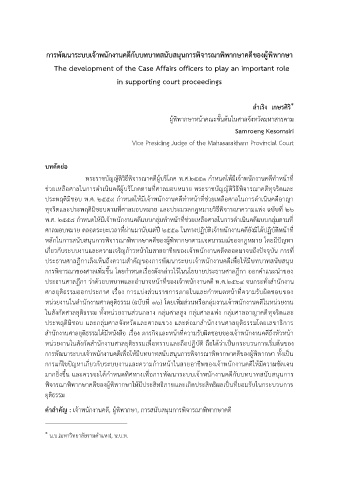 ค าส าคัญ : เจ้าพนักงานคดี, ผู้พิพากษา, การสนับสนุนการพิจารณาพิพากษาคดี