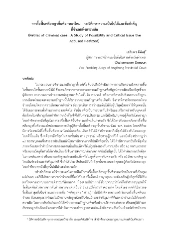 การรื้อฟื้นคดีอาญาขึ้นพิจารณาใหม่ : กรณีศึกษาความเป็นไปได้และข้อส าคัญ