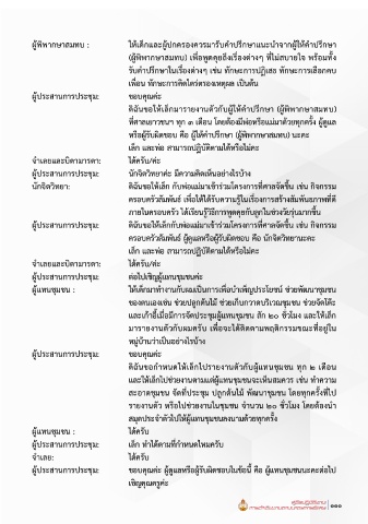 มากยิ่งขึ้นสวนเด็กควรปรับปรุงในดานพฤติกรรมที่เสียหาย เชื่อฟงบิดา ผูประสานการประชุม: ดิฉันขอใหเล็กกับพอแมมาเขารวมโครงการที่ศาลจัดขึ้น เชน กิจกรรม