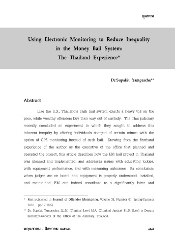 ** Dr. Supakit Yampracha, LL.M. (Criminal Law) M.A. (Criminal Justice) Ph.D. (Law) is Deputy