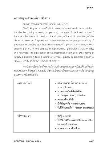 พิธีสารฯ กำาหนดนิยามการค้ามนุษย์ใน Article 3 ว่า