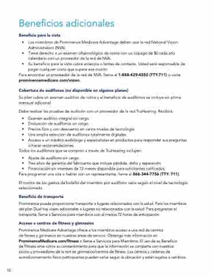 ProminenceMedicare.com/fitness o llame a Servicios para Miembros. El uso de su Beneficio