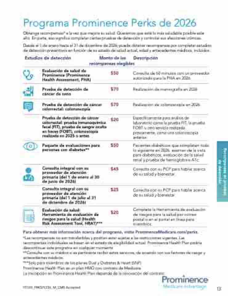 Para obtener más información acerca del programa, visite ProminenceMedicare.com/perks.