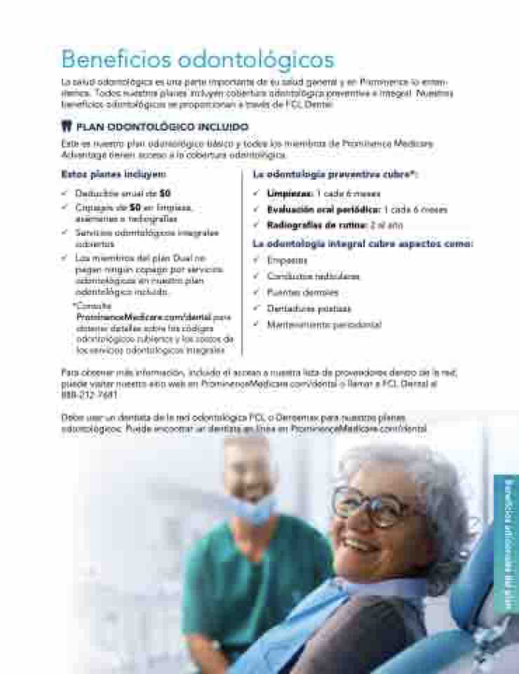 puede visitar nuestro sitio web en ProminenceMedicare.com/dental o llamar a FCL Dental al