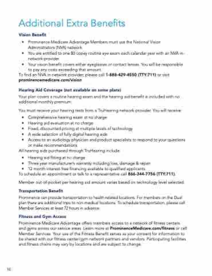 and gyms across our service areas. Learn more at ProminenceMedicare.com/fitness or call