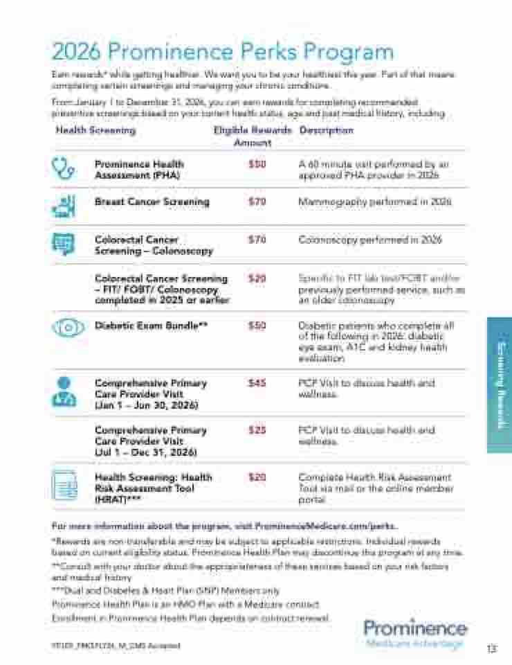 For more information about the program, visit ProminenceMedicare.com/perks.