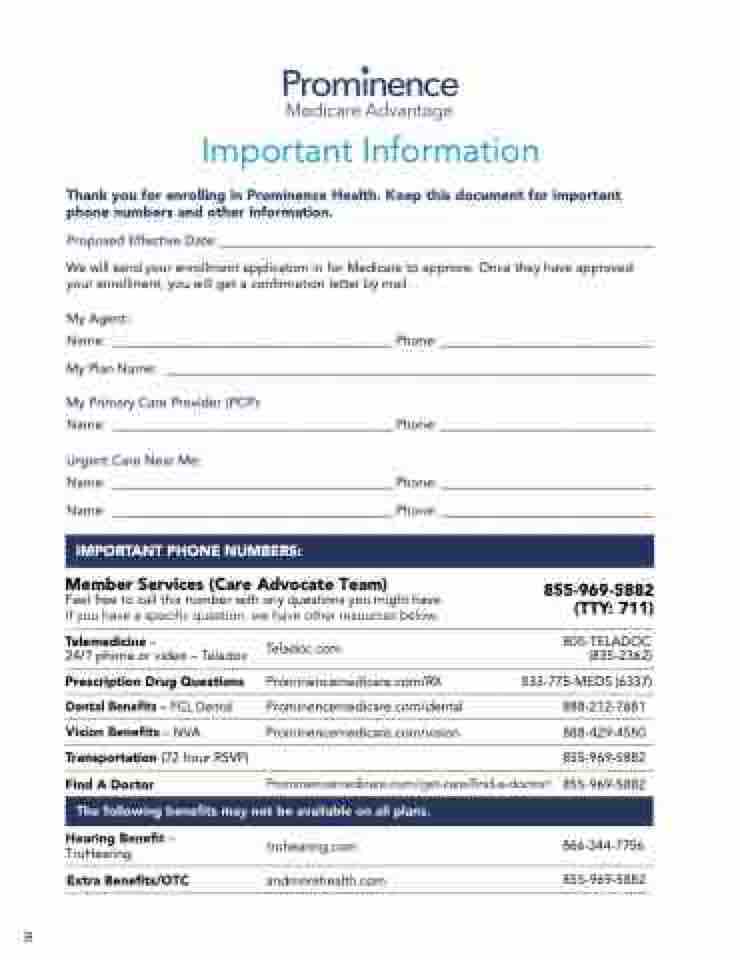 Thank you for enrolling in Prominence Health. Keep this document for important