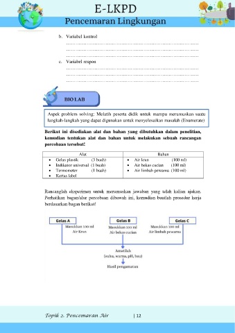 Termometer (1 buah) Air limbah pewarna (100 ml)