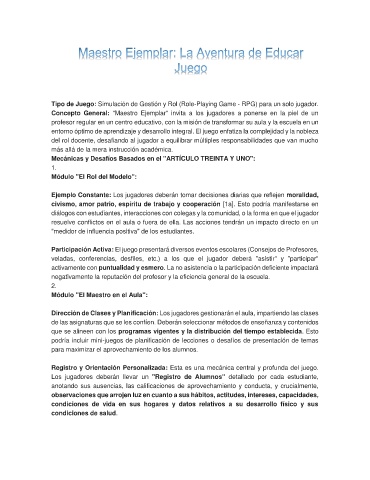 Concepto General: "Maestro Ejemplar" invita a los jugadores a ponerse en la piel de un