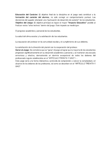 Educación del Carácter: El objetivo final de la disciplina en el juego será contribuir a la
