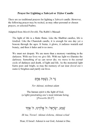 Prayer for Lighting a Yahrzeit or Yizkor Candle