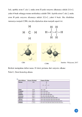 Jadi, apabila atom C ada 1, maka atom H pada senyawa alkananya adalah 2(1)+2,