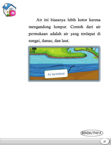 Air ini biasanya lebih kotor karena mengandung lumpur. Contoh dari air permukaan adalah air yang terdapat di sungai, danau, dan laut. 26
