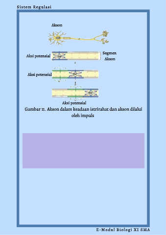 Sistem Regulasi Akson Segmen Aksi potensial Akson Aksi potensial Aksi potensial Gambar 11. Akson dalam keadaan istrirahat dan akson dilalui oleh impuls E-Modul Biologi XI SMA