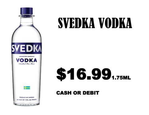 SVEDKA VODKA $16.991.75ML CASH OR DEBIT
