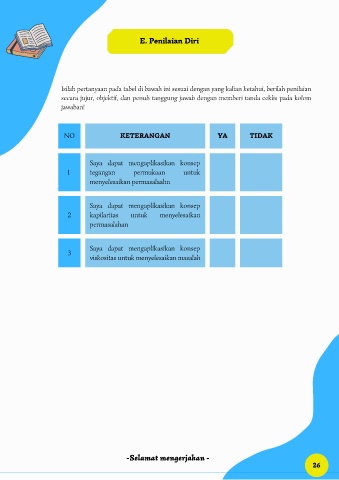 secara jujur, objektif, dan penuh tanggung jawab dengan memberi tanda ceklis pada kolom