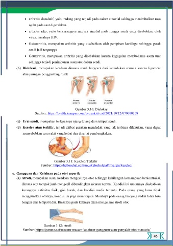 (d) Keseleo atau terkilir, terjadi akibat gerakan mendadak yang tak terbiasa dilakukan, yang dapat