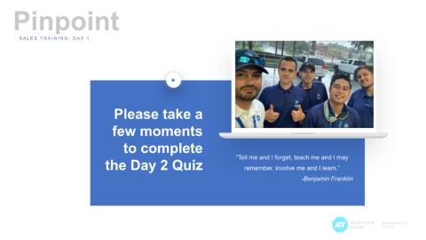 Pinpoint S A L E S T R A I N I N G - D A Y 1 Please take a few moments to complete the Day 2 Quiz “Tell me and I forget, teach me and I may remember, involve me and I learn.” -Benjamin Franklin