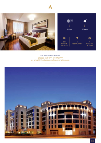 51Kms 6 7Kms 180 1 1 4 ROOMS ROOMS RESTAURANT MEETING & SUITES ROOMS ROOMS For more information please call +971 4 607 2777 or email jithesh dsouza@movenpick com 123 ... ...