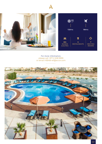 112Kms 18Kms 224 5 7 ROOMS ROOMS RESTAURANTS MEETING & SUITES ROOMS ROOMS For more information please call +971 2 508 9999 or or email H6948-re1@accor com 157 ... ...
