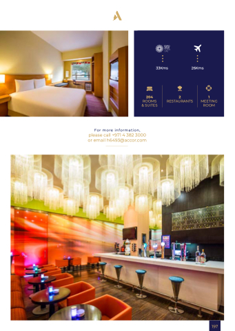 33Kms 26Kms 204 2 2 1 ROOMS RESTAURANTS MEETING & SUITES ROOM ROOM For more information please call +971 4 4 382 3000 or or email h6493@accor com 197 ... ...