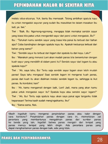 Tiwi : “Ah, Ibu! Tentu saja spatula kayu akan saya pakai agar tanganku tidak