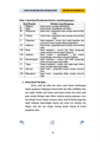 Tabel 1. Saraf-Saraf Kranial dan Struktur yang Dirangsangnya