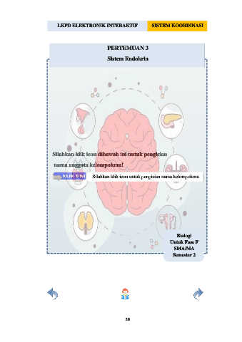 LKPD ELEKTRONIK INTERAKTIF SISTEM KOORDINASI PERTEMUAN 3 Sistem Endokrin Silahkan klik icon dibawah ini untuk pengisian nama anggota kelompokmu! Silahkan klik icon untuk pengisian nama kelompokmu Biologi Untuk Fase F SMA/MA Semester 2 38