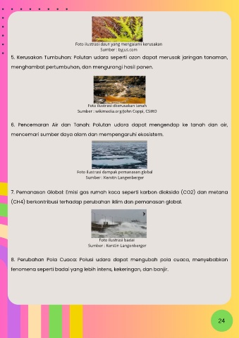 6. Pencemaran Air dan Tanah: Polutan udara dapat mengendap ke tanah dan air,