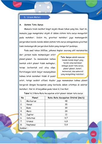Tabel 6.1 Rata-Rata kecepatan orbit planet dalam tata surya