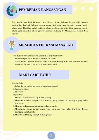 menjatuhkan dua buah kelereng tersebut dengan ketinggian yang berbeda. Namun, bentuk
