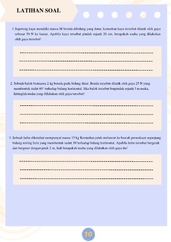 1. Sepotong kayu memiliki massa M berada dibidang yang datar, kemudian kayu tersebut ditarik oleh gaya