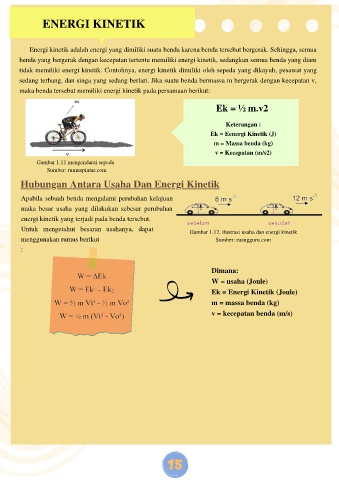 tidak memiliki energi kinetik. Contohnya, energi kinetik dimiliki oleh sepeda yang dikayuh, pesawat yang