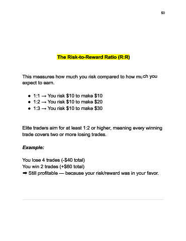 Elite traders aim for at least 1:2 or higher, meaning every winning