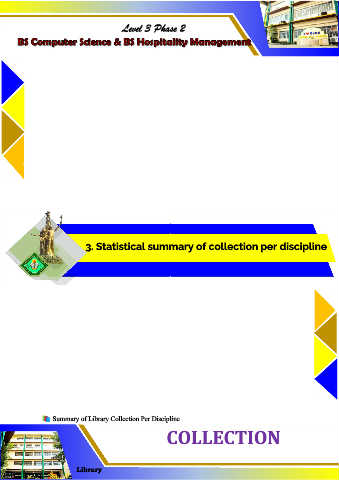 Level 3 Phase 2 3. Statistical summary of collection per discipline Summary of Library Collection Per Discipline COLLECTION Library