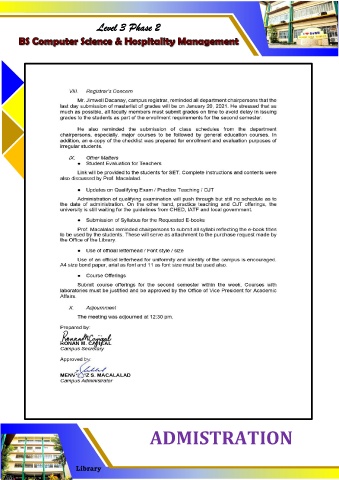 Level 3 Phase 2 BS Computer Science & Hospitality Management ADMISTRATION Library
