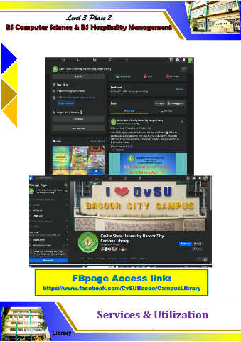 Level 3 Phase 2 FBpage Access link: https://www.facebook.com/CvSUBacoorCampusLibrary Services & Utilization L Library