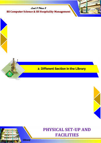Level 3 Phase 2 BS Computer Science & BS Hospitality Management 2. Different Section in the Library PHYSICAL SET-UP AND FACILITIES Library